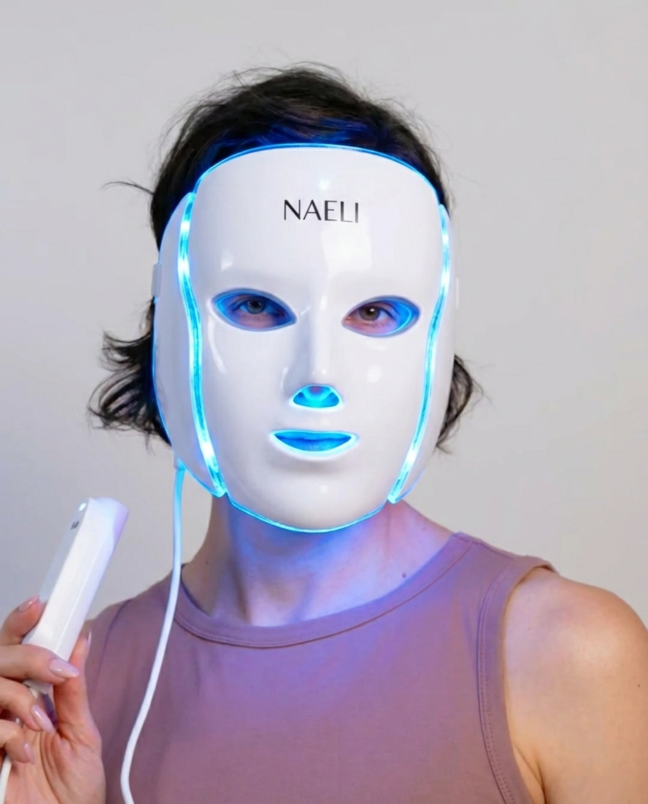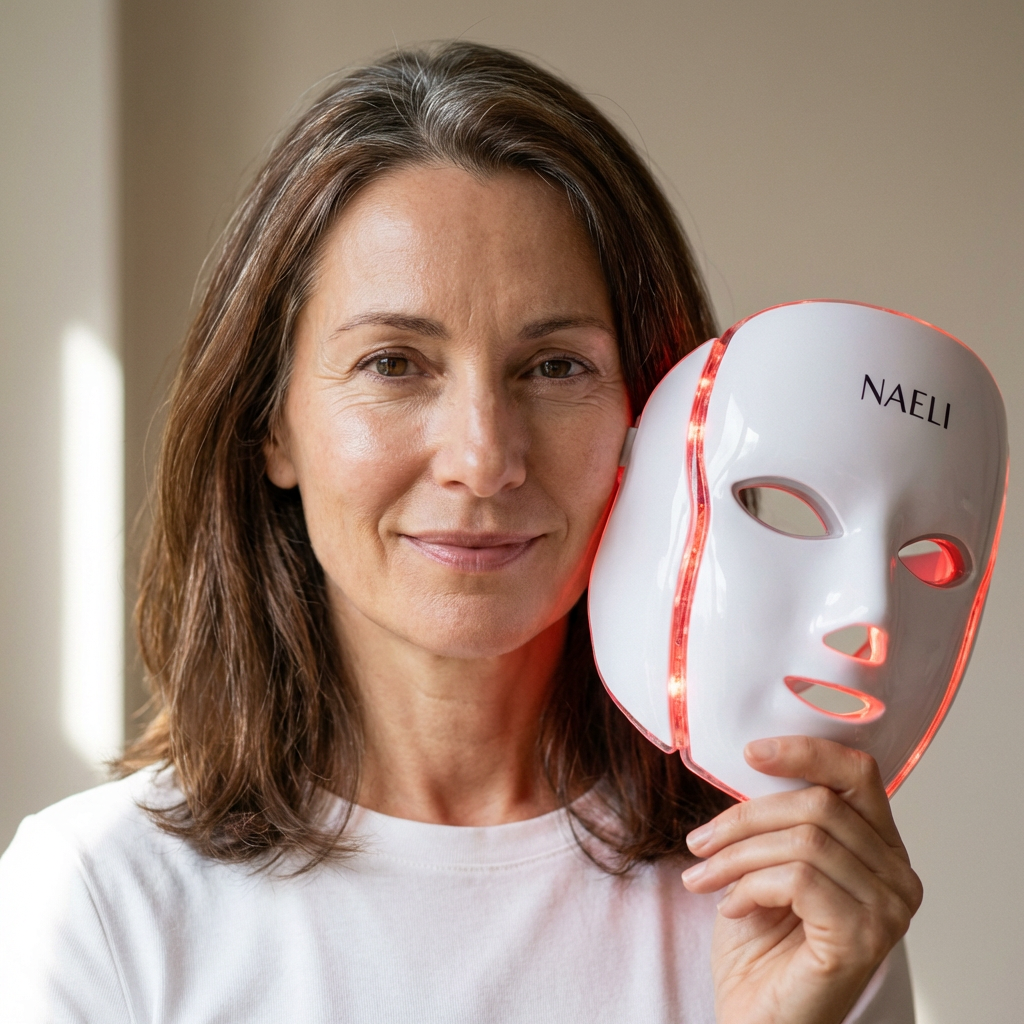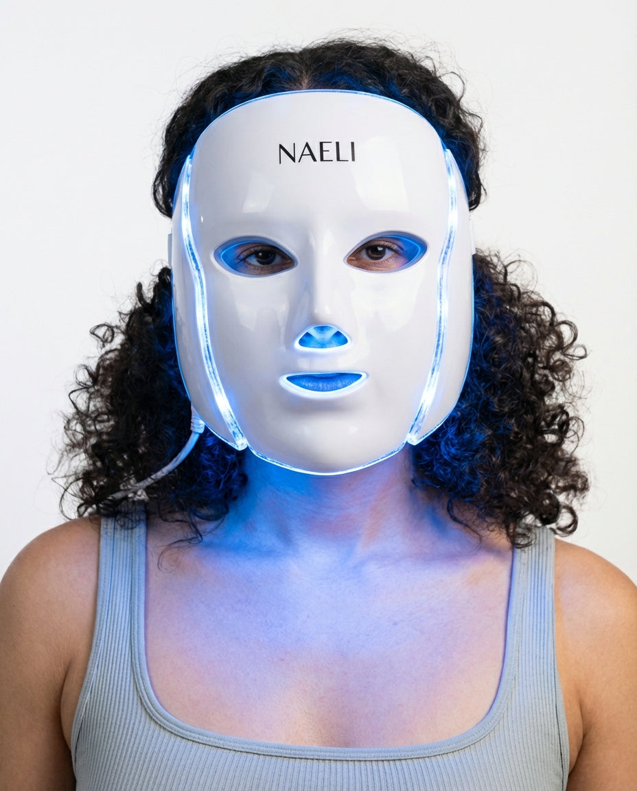 Pendant 5 ans, elle a testé, comparé et affiné ce qui fonctionne réellement en luminothérapie : les bonnes longueurs d’onde, la bonne puissance, et une utilisation qui s’intègre à la vraie vie. Le résultat, c’est le masque LED de NAELI : un masque pensé pour lisser, raffermir et réveiller l’éclat — sans agresser la peau.